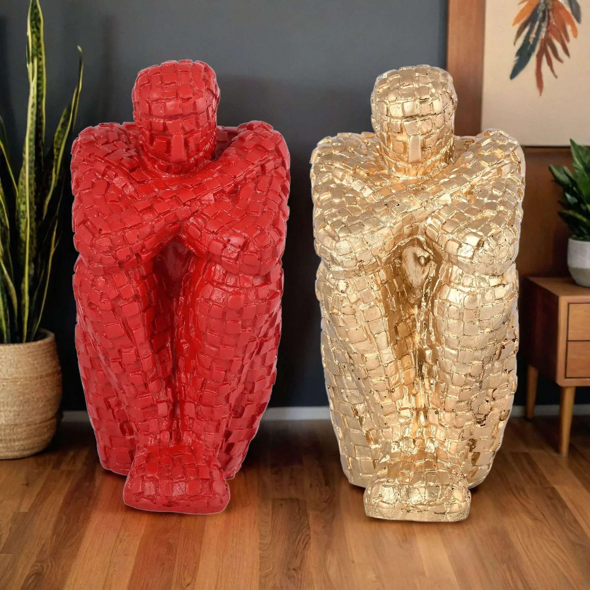Handcrafted Thinking Mens in Sitting Position for Home Decor/Gifting/Living Room Decorative Showpiece – 20 cm (Polyresin, Red, Gold)